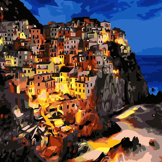 Farbe Durch Zahl Burg Hawaii Nacht Szene Malen Auf Leinwand Acryl Farbung Painitng Durch Zahlen Fur Home Wand Dekoration
